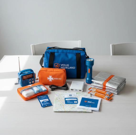 Noodpakketten en noodradio’s samengesteld voor Nederlandse huishoudens.